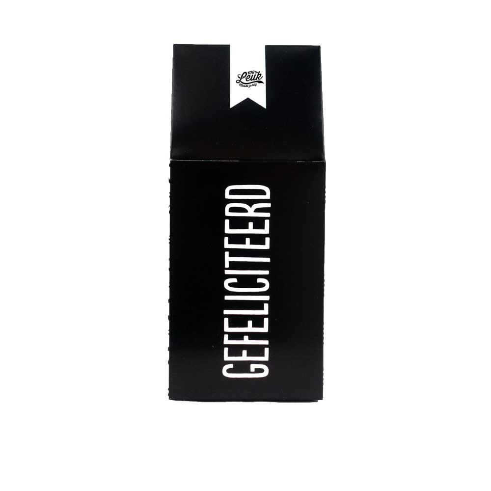Of je nu je verjaardag, rijbewijs, nieuwe baan, diploma of zwangerschap viert, er zijn altijd redenen om te feliciteren. Dit cadeau zal zeker een glimlach op het gezicht toveren! Gevuld met heerlijke zwart-witte snoepballetjes met een dropsmaak.