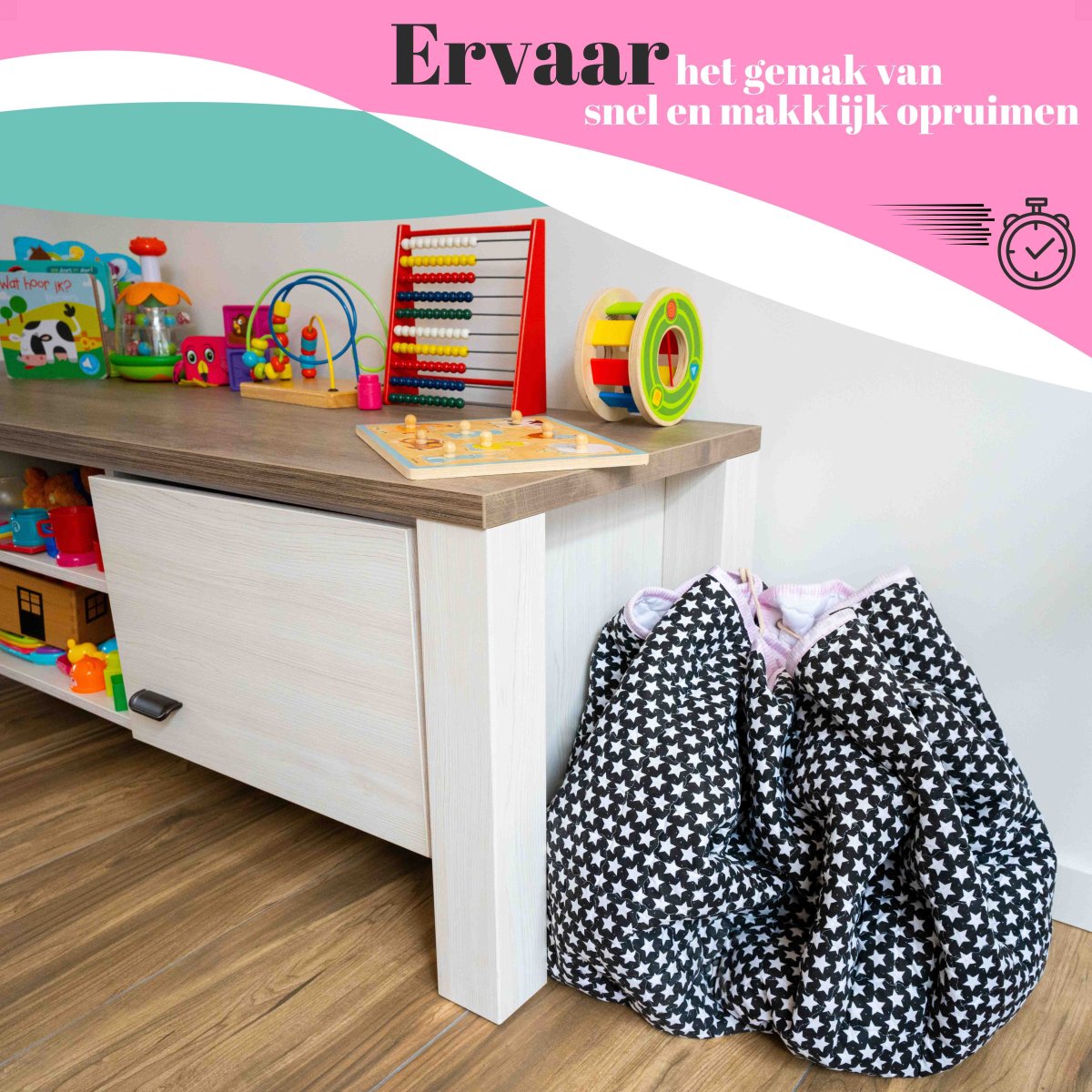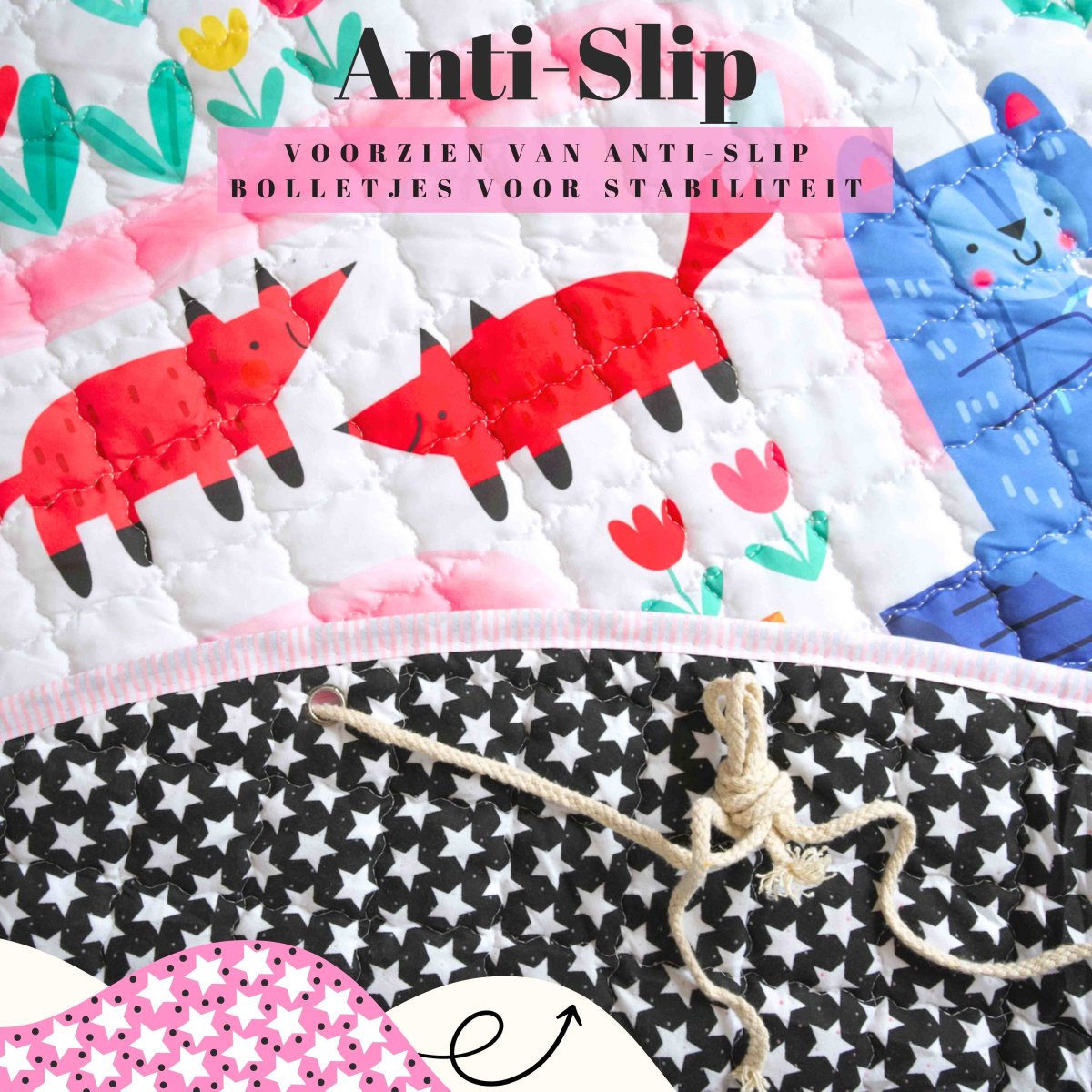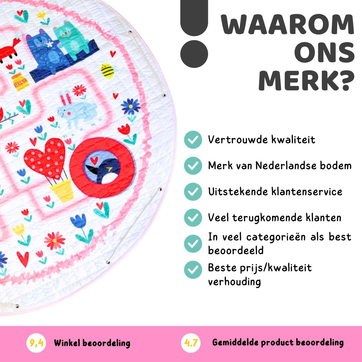 Dit 10mm dik multifunctionele speelkleed is gemaakt van een hoogwaardig textiel, waardoor je kind heerlijk kan spelen op het gehele oppervlakte van de speelmat. Door het bijgeleverde koord is het kleed tevens te gebruiken als opbergzak, om binnen een paar seconden al het rondslingerend speelgoed op te bergen.