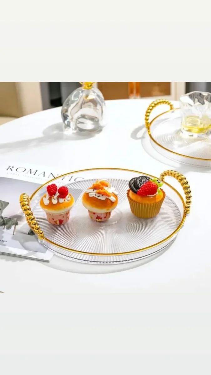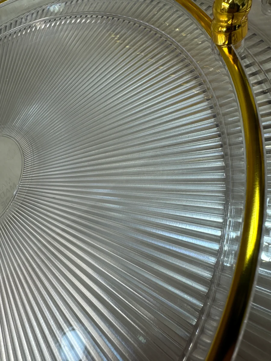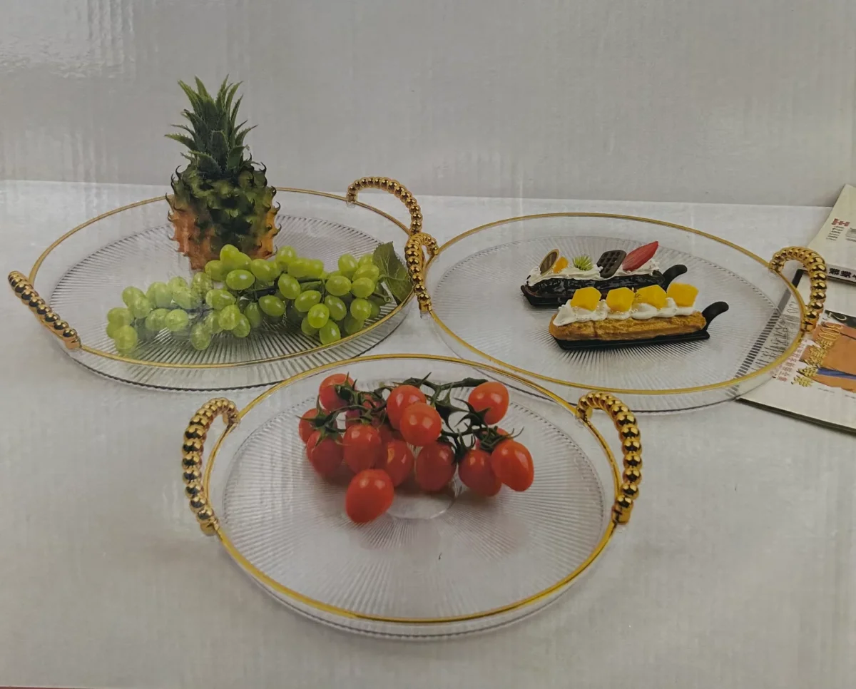 Deze luxe 3-delige dienbladenset combineert stijl en functionaliteit in een elegant design. Gemaakt van hoogwaardig acrylic plastic met gouden details, zijn deze dienbladen perfect voor het serveren van hapjes, drankjes of decoratieve items. De goudkleurige handvatten zorgen voor een comfortabele grip en een chique uitstraling.
