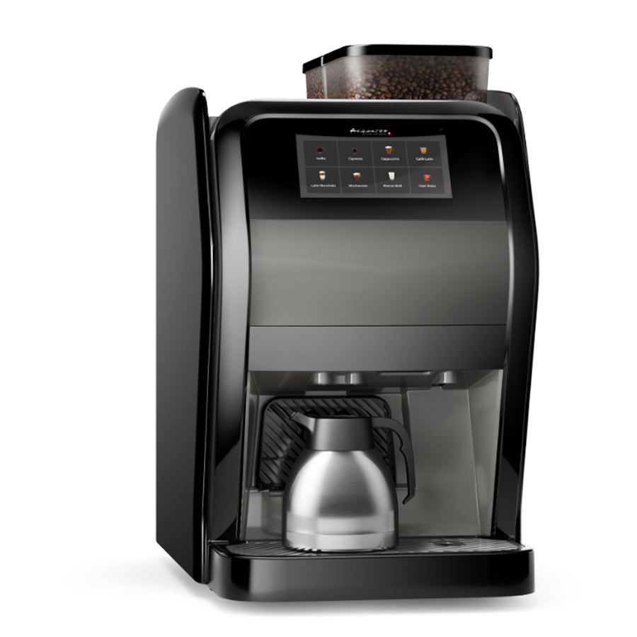 Krachtige, compacte volautomaat voor kantoren en horeca. Voorzien van diverse kleuren instelbaar LED verlichting, dubbele uitgifte, aparte uitgiftepijp voor heet water en lekbak voor afvalwater.