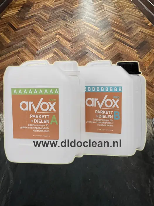 Arvox-Pro Parket & Vloerdelen 2x10L is dé gepatenteerde 2-componenten reiniger voor het efficiënt en milieuvriendelijk reinigen van parket en vloerdelen binnenshuis.