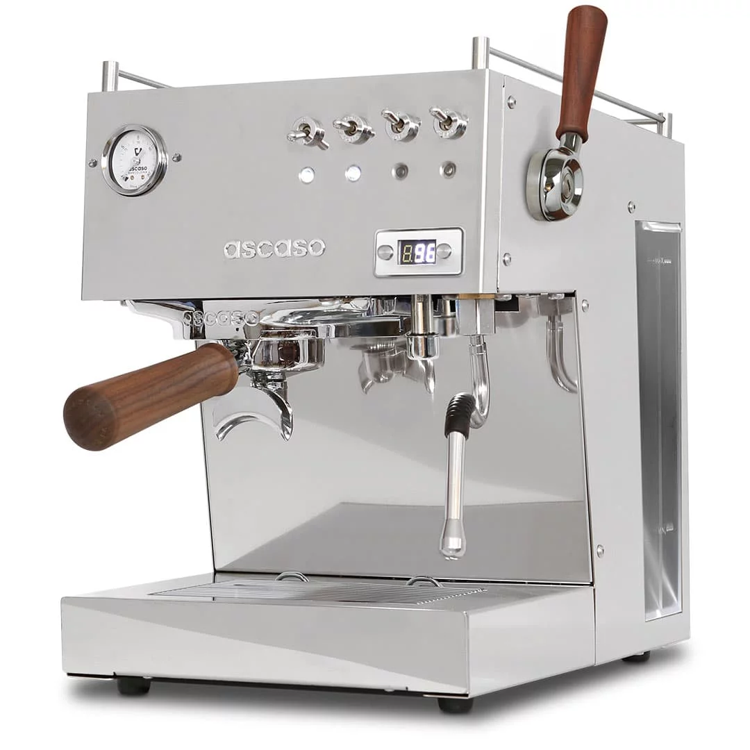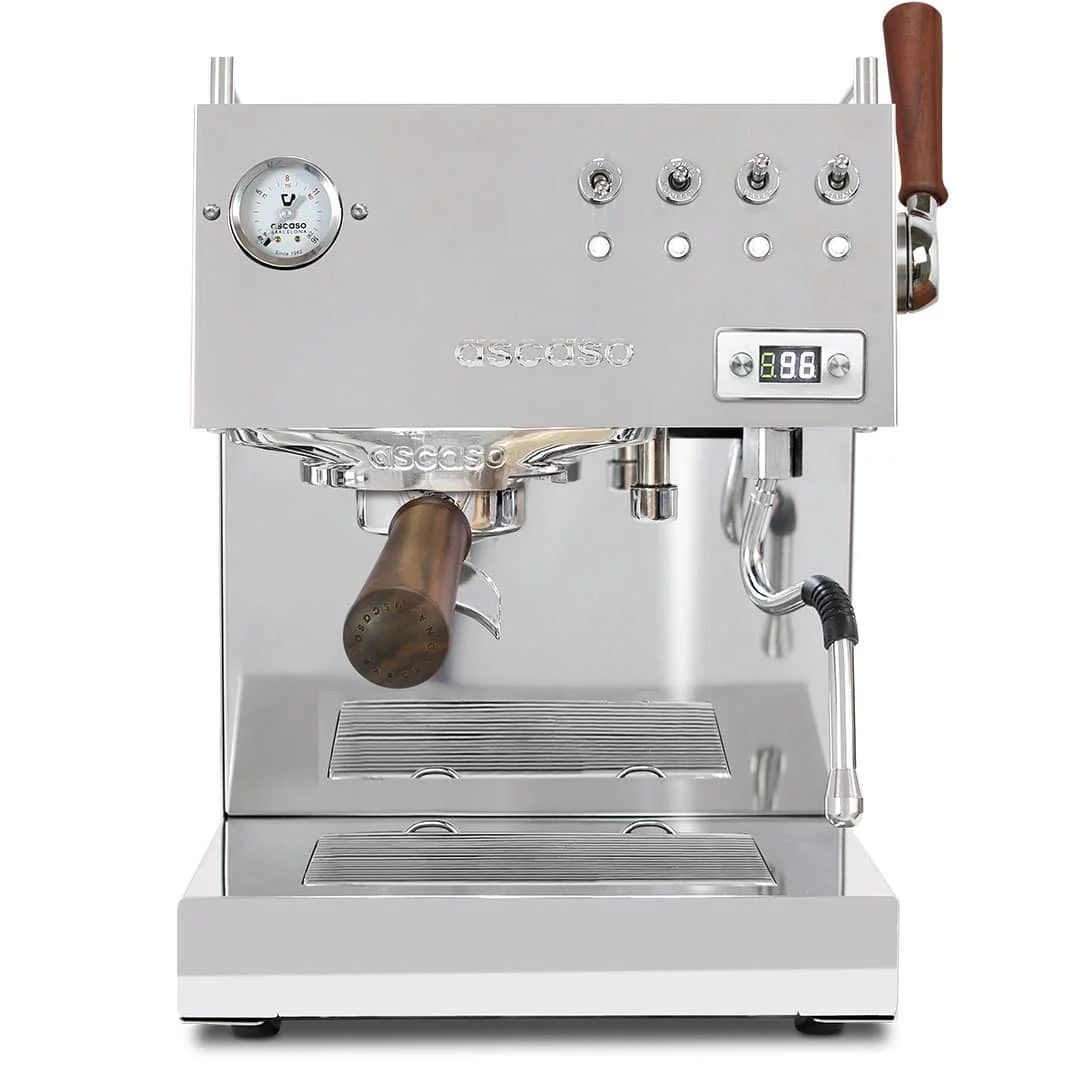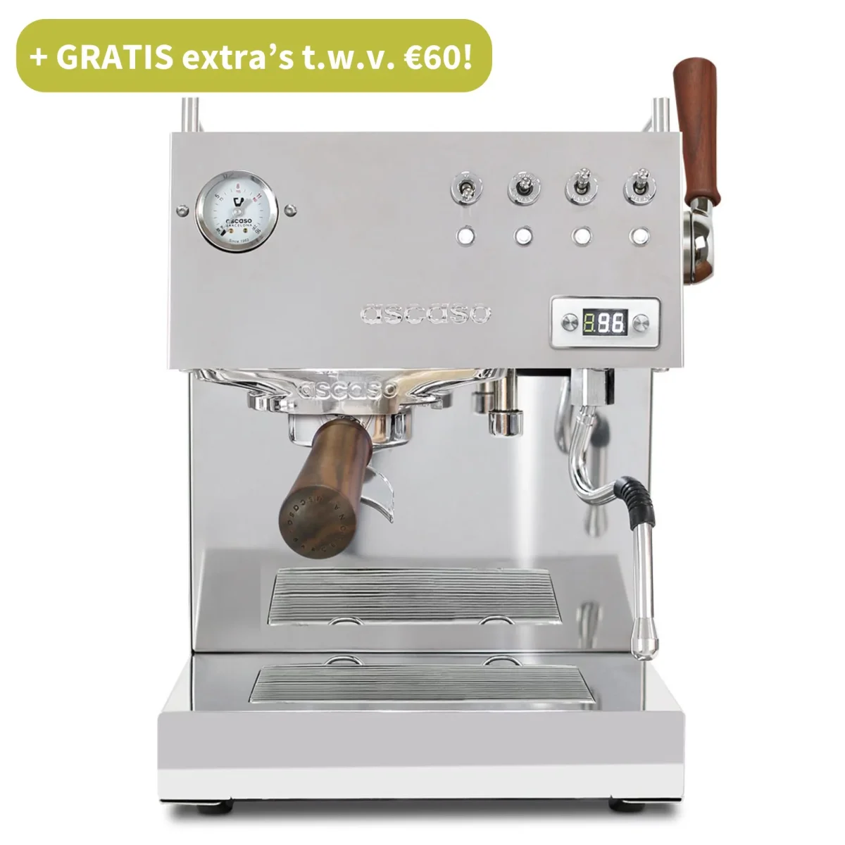 De Ascaso Duo PLUS komt tegemoet aan de veeleisende thuis Barista. Voorzien van een naked filterdrager en 18 en 21 grams filterbakjes. Een nieuwe lekbak constructie van RVS en verschillende stoomtips (1 en 3 gats), competition shower screen (waterverdeelzeef) en 5 verschillende filterbakjes. Een mooie RVS tamper wordt meegeleverd en stomen doe je met de joystick hendel die we kennen van het topmodel Ascaso Baby T.