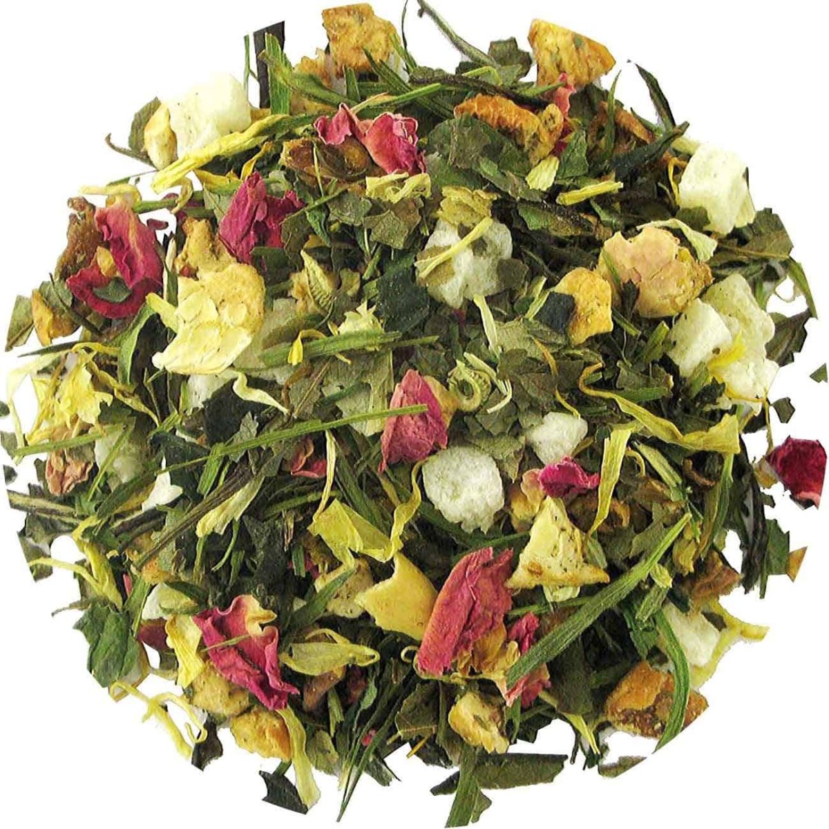 Ingrediënten: Appel, Ananas, witte thee, Bamboeblad, Kruizemunt, Bramenblad, Aroma, Rozenbloesem, Goudbloembloesem.