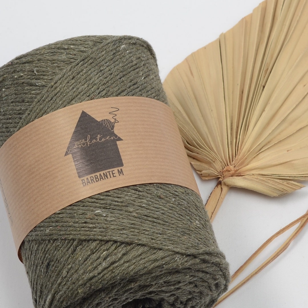 Barbante is een 100% gerecycled garen dat bestaat uit ca 80% katoen en ca 20% andere vezels. Restjes uit de kledingindustrie worden samengebracht, gesorteerd op kleur en vervolgens gemengd tot alle tinten die beschikbaar zijn. Dit slimme proces verzekert dat het garen niet geverfd en chemisch gereinigd hoeft te worden zodat er tijdens het proces energie en water bespaard wordt. En dat resulteert in een unieke prijs kwaliteit verhouding.