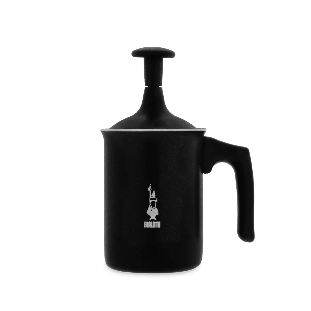 De Bialetti melkopschuimer Tutto Crema heeft een mooie mat zwarte afwerking, zo schenk je in stijl het heerlijke melkschuim uit.