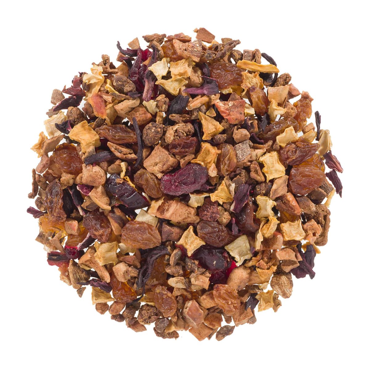Ingrediënten: Druiven, stukjes appel, stukjes ananas, kaneel, hibiscus, cranberries (allen van biologische teelt).