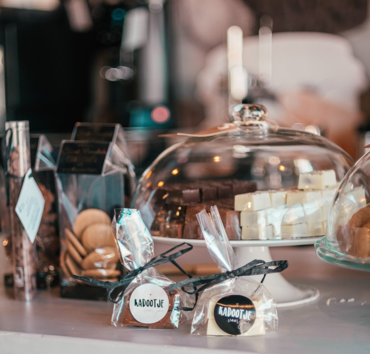 Brownie: Een verrukkelijke bonbon met de smaak van smeuïge brownie, perfect gebalanceerd met rijke chocolade en een flinke dosis liefde.