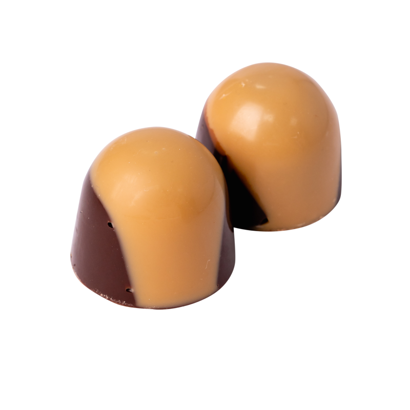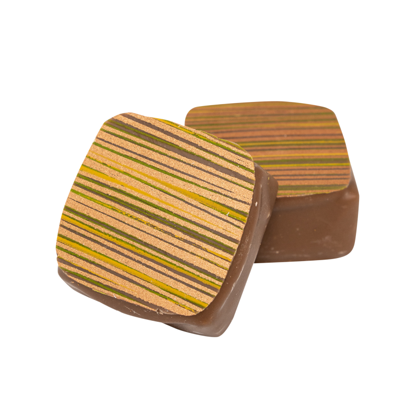 Koffie Karamel: Deze bonbon met koffie karamel smaak, smelt op je tong. Geniet van de romige melkchocolade met een unieke vulling.