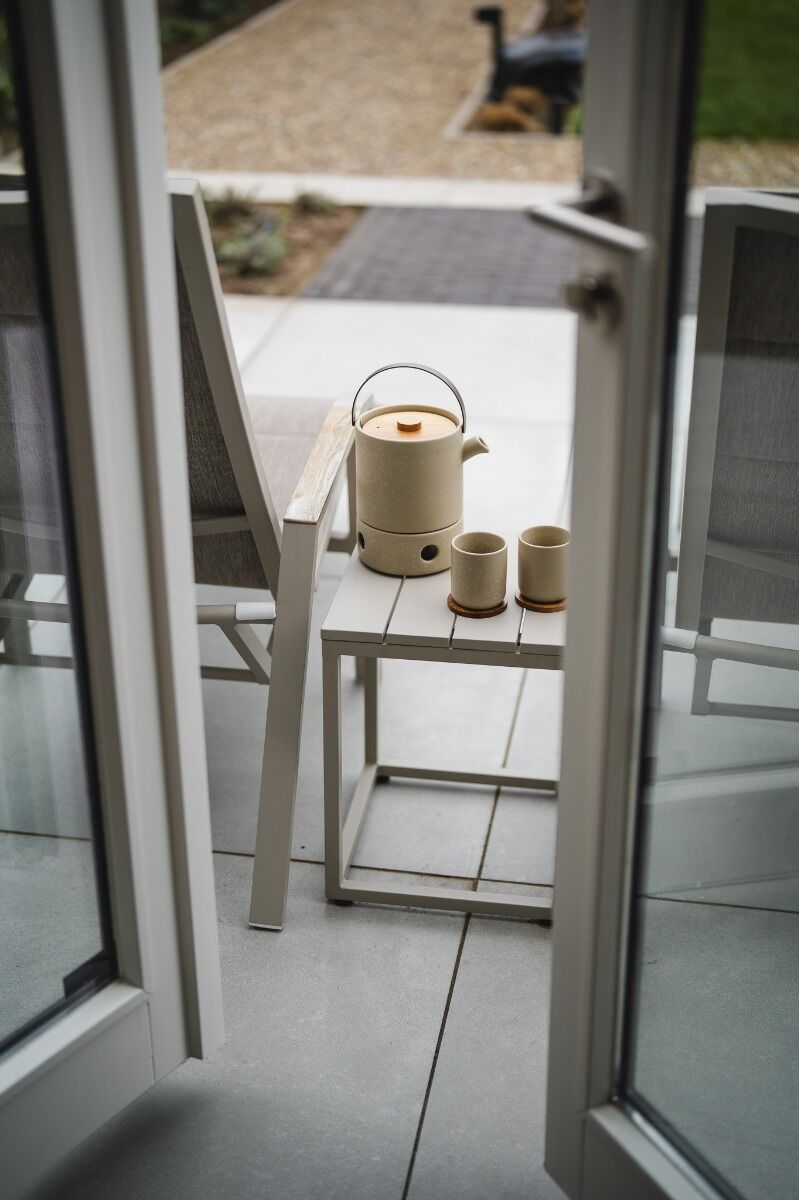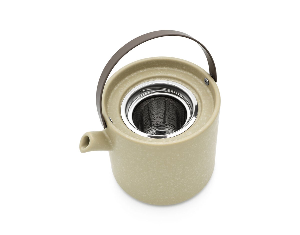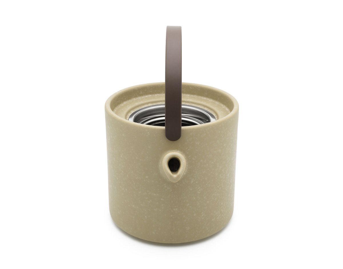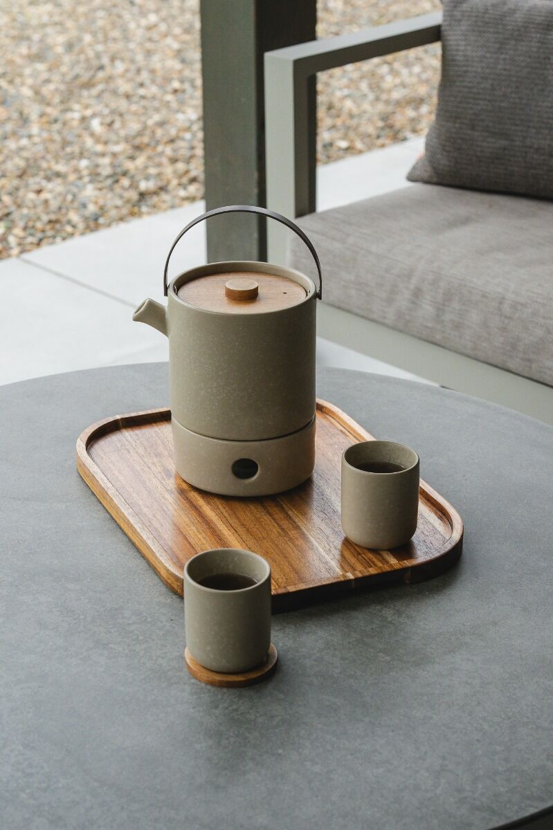 Een eigentijdse keramieken theeset, bestaande uit een ruime theepot (1,2 liter) met een deksel van acacia en een theelicht. Een perfecte theeset voor een gezellig theemoment!