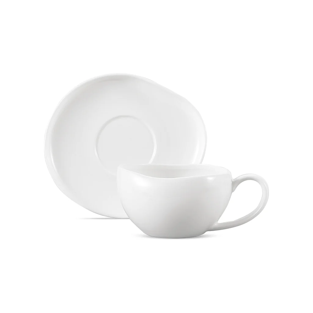 Deze elegante Curvy espressoset in helder wit is speciaal ontworpen voor liefhebbers van espresso en Turkse koffie. Het organische ontwerp met zachte, vloeiende lijnen geeft elk kopje een unieke vorm en zorgt voor een moderne, stijlvolle uitstraling op tafel. Met een inhoud van 120 ml zijn de kopjes perfect geschikt voor een volle espresso, Türk kahvesi of een kleine cappuccino. De bijpassende schotels hebben dezelfde speelse vormgeving en bieden voldoende ruimte voor een zoetigheid of een klein lepeltje. Dankzij de hoogwaardige afwerking voelt de set luxe aan en is hij zowel duurzaam als comfortabel in dagelijks gebruik. Deze 12-delige set is ideaal voor 6 personen en brengt een combinatie van elegantie, functionaliteit en tijdloos design in jouw koffiemoment.