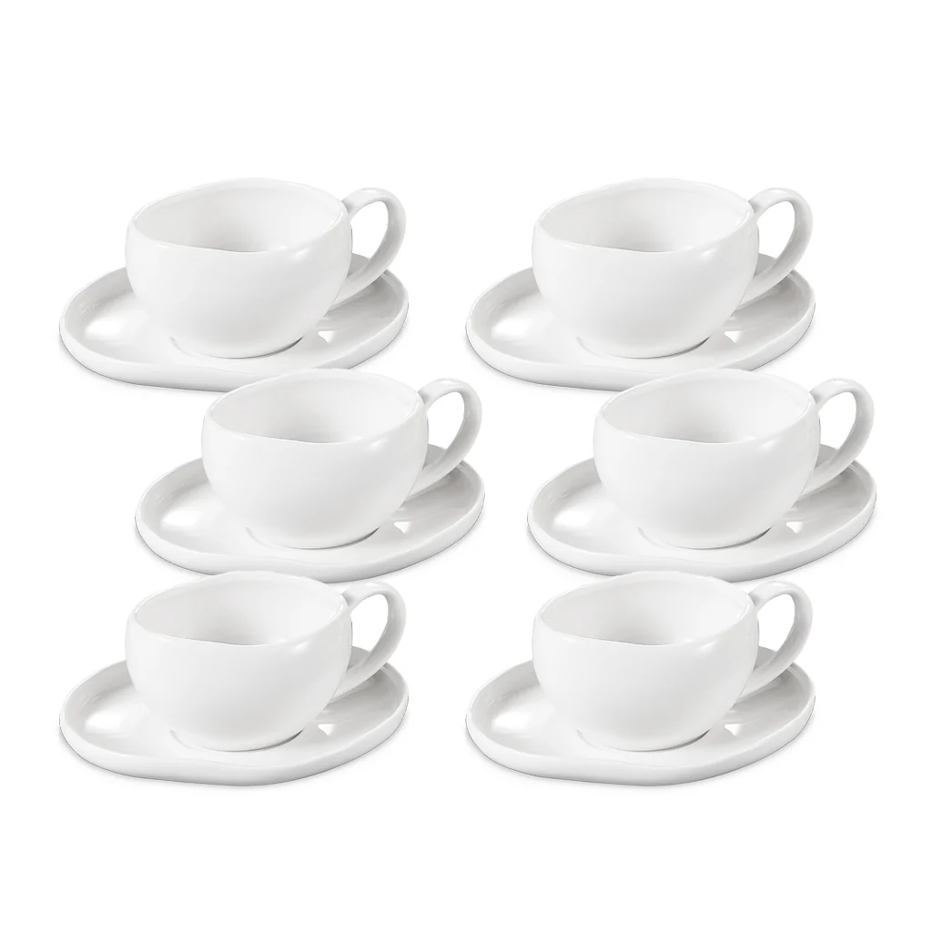 Deze elegante Curvy koffieset in helder wit combineert een moderne organische vorm met het comfort van dagelijks gebruik. De zachte, vloeiende lijnen van zowel de kopjes als de schotels geven het geheel een luxueuze uitstraling, terwijl het keramiek stevig en duurzaam blijft. Met een inhoud van 200 ml zijn de kopjes ideaal voor cappuccino, koffie verkeerd, latte of een royale zwarte koffie. De bijpassende schotels hebben dezelfde stijlvolle, golvende vorm en bieden voldoende ruimte voor een lepeltje of koekje. Dankzij het tijdloze design past deze set moeiteloos in ieder interieur en is het de perfecte keuze voor koffiemomenten met gasten of dagelijkse verwennerij. Een hoogwaardige en sfeervolle koffieset die iedere tafelsetting meteen een moderne upgrade geeft.