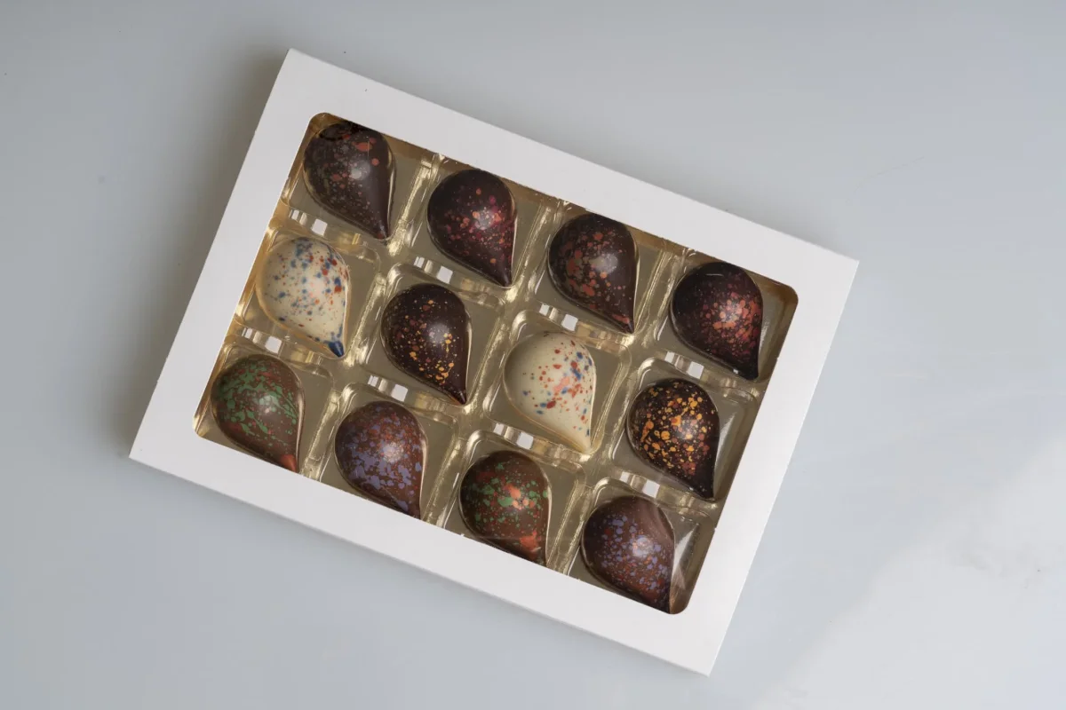 Een samenstelling van 12 heerlijke bonbons in de samenstelling van:
