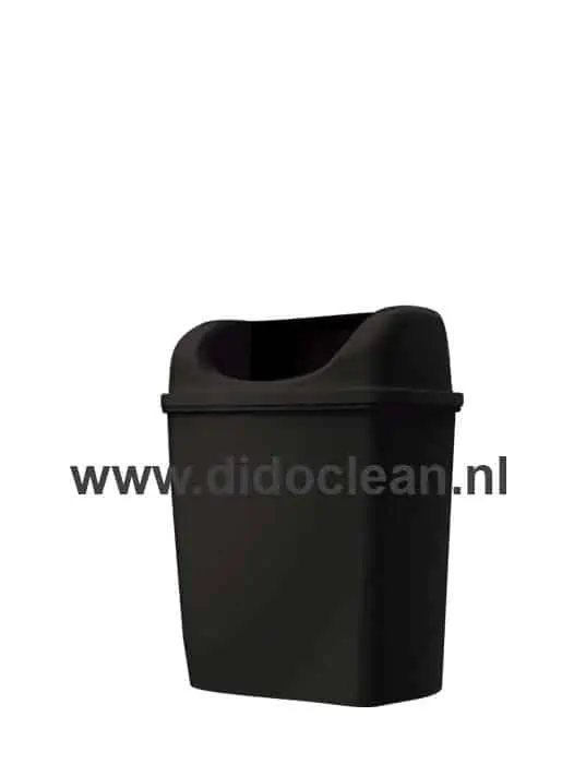 De DiDoClean Afvalbak MINI Zwart is een kleine afvalbak met een inhoud van 6 liter. De DiDoClean Afvalbak MINI Zwart is zowel staand als hangend te plaatsen en wordt geleverd inclusief accessoires voor wandmontage. Het deksel van de afvalbak heeft een open inworp. De speciale meegeleverde ring zorgt ervoor dat u de vuilniszak strak aan de binnenzijde van de bak kunt bevestigen. De DiDoClean Afvalbak MINI Zwart is vervaardigd uit slagvast materiaal (PP) en is gemakkelijk te reinigen. Daarnaast is de DiDoClean Afvalbak MINI Zwart ook nog eens zeer scherp geprijsd!