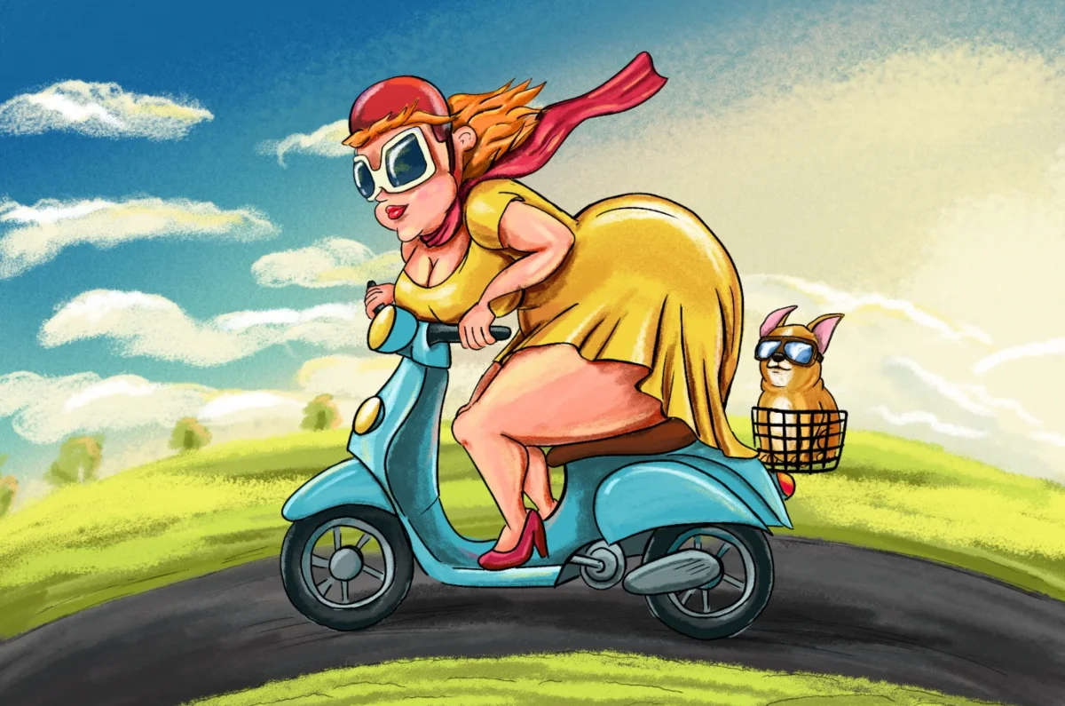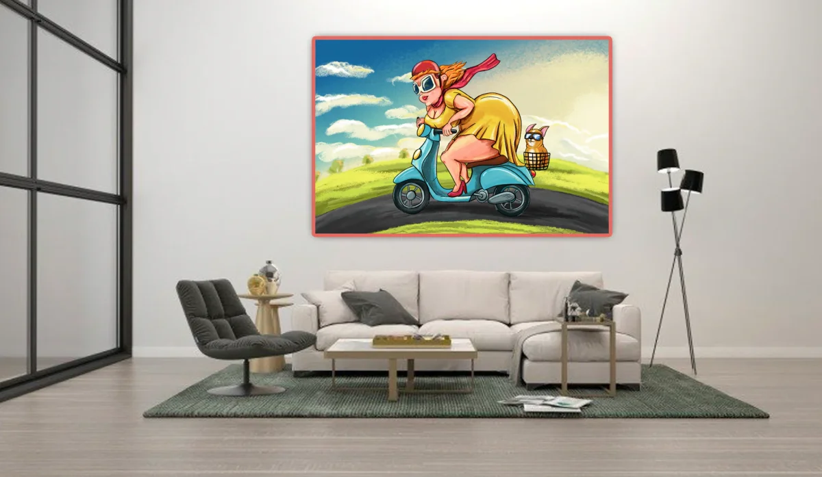 Bestel jouw exclusieve dikke dame op de scooter diamond painting
