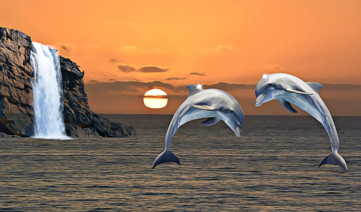 Dolfijnen en zonsondergang