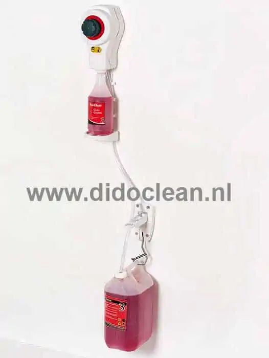 De Dosing Care ECOShot Flacon is een volledig Hand bedienbaar doseersysteem, die een specifieke hoeveelheid geconcentreerde chemicaliën in de sprayflacon doseert. Toepasbaar voor een flacon met hoogte: 144 – 288 mm. De Dosing Care ECOShot Flacon is geschikt voor chemicaliën van max. 150 cpi. en wordt standaard zonder cabinet geleverd. Dit doseersysteem biedt u een oneindige mogelijkheid om te doseren tussen 5 ml en 30 ml, afhankelijk van welk soort chemicaliën u gebruikt. Om veelvuldig achter elkaar pompen te voorkomen is de Dosing Care ECOShot Flacon voorzien van een ingebouwde flexibele vertragingsfunctie.