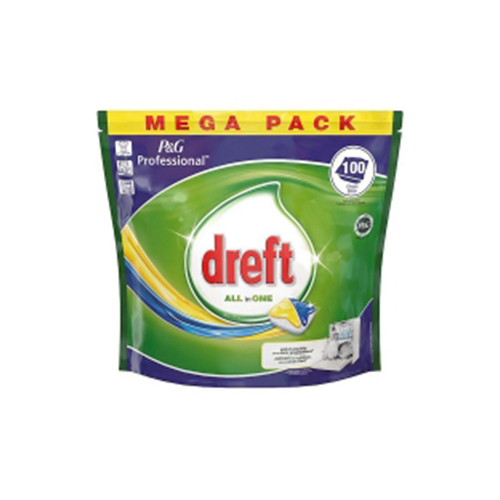 Met Dreft Professional alles-in-één vaatwas capsules kunt u dagelijks rekenen op een schone vaat, zonder doffe plekken. De actieve capsules zijn voorzien van glansbescherming en metaalglans, zodat zowel glazen als bestek er prach-tig uitzien. Deze tabletten zijn ontwikkeld voor gebruik in huishoudelijke vaatwassers met een lange cyclus. De tablet-ten lossen volledig op en laten geen restanten achter. De verpakking bevat 100 capsules met frisse citroengeur.