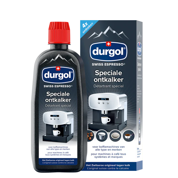 Het laat geen restanten achter in uw machine en na het ontkalken en naspoelen absoluut veilig voor levensmiddelen. Durgol swiss espresso is verpakt in een fles a 500ml. U gebruikt per ontkalkingsbeurt 125 mL Durgol. U kunt met een fles van 500 mL dus 4 keer ontkalken.
