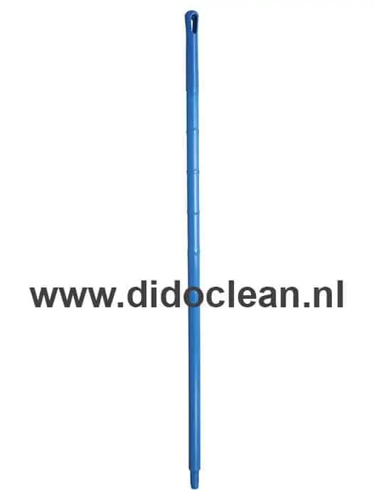 De volledig kunststof Ergonomische Hygiënesteel Polypropyleen 150 cm BLAUW met schroefdraad voor aansluiting op bezems, borstels en schrapers.