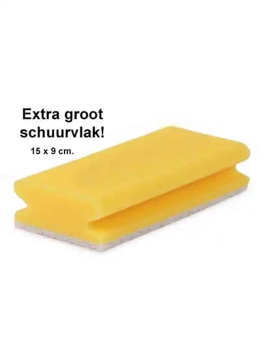 Extra grote schuurspons met grip en witte schuurzijde voor het veilig reinigen van oppervlakken van bijvoorbeeld RVS. De extra grote gripsons is uitgevoerd in de kleur geel met witte schuurzijde. De witte schuurzijde is veiliger voor uw oppervlakken dan de groene variant. Onmisbaar bij het reinigen in de keuken van bijvoorbeeld RVS fornuis en pannen.