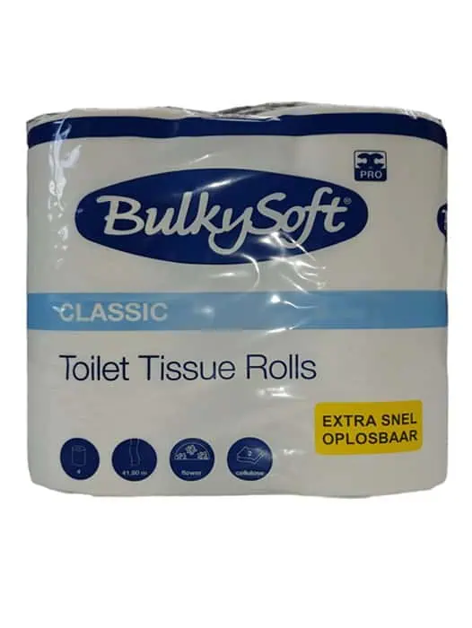 Extra Snel Oplosbaar Toiletpapier pak van 4 rollen. Cellulose toiletpapier wat extra gemakkelijk oplost in water. 2 laags extra zachte kwaliteit cellulose toiletpapier.