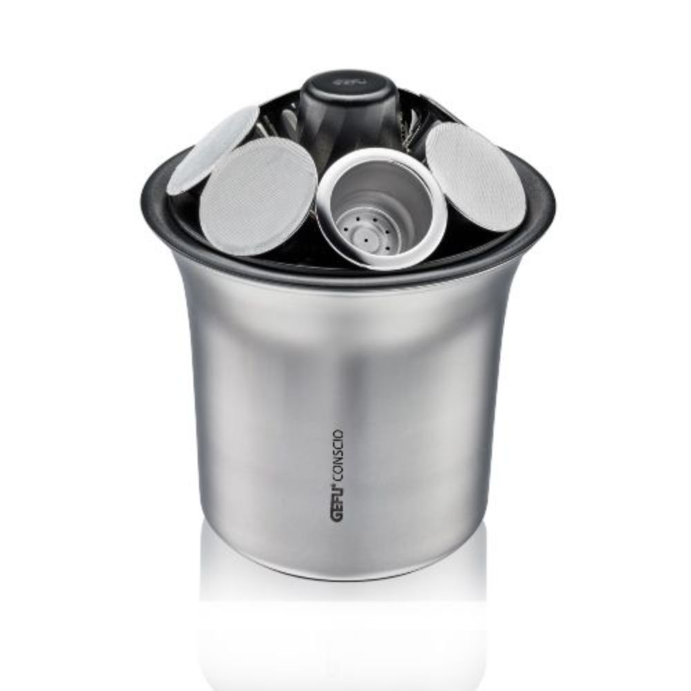 Snel jouw koffiecapsules CONSCIO schoon hebben? Dan gebruik je de opvangbak uit de CONSCIO-serie van GEFU! Deze opvangbak biedt ruimte om 6 koffiecapsules in te zetten. Je plaatst de capsules gewoon met de opening op de rand en draait deze vervolgens rond. Hierdoor valt de koffiedik in de opvangbak en is de capsule weer klaar voor het volgende kopje koffie! Uiteraard kan je ook andere koffiecapsules gebruiken. De opvangbak heeft een anti-slipbodem, waardoor deze extra stevig staat. Wil je deze opvangbak reinigen? Dan kan dit eenvoudig in de vaatwasser!