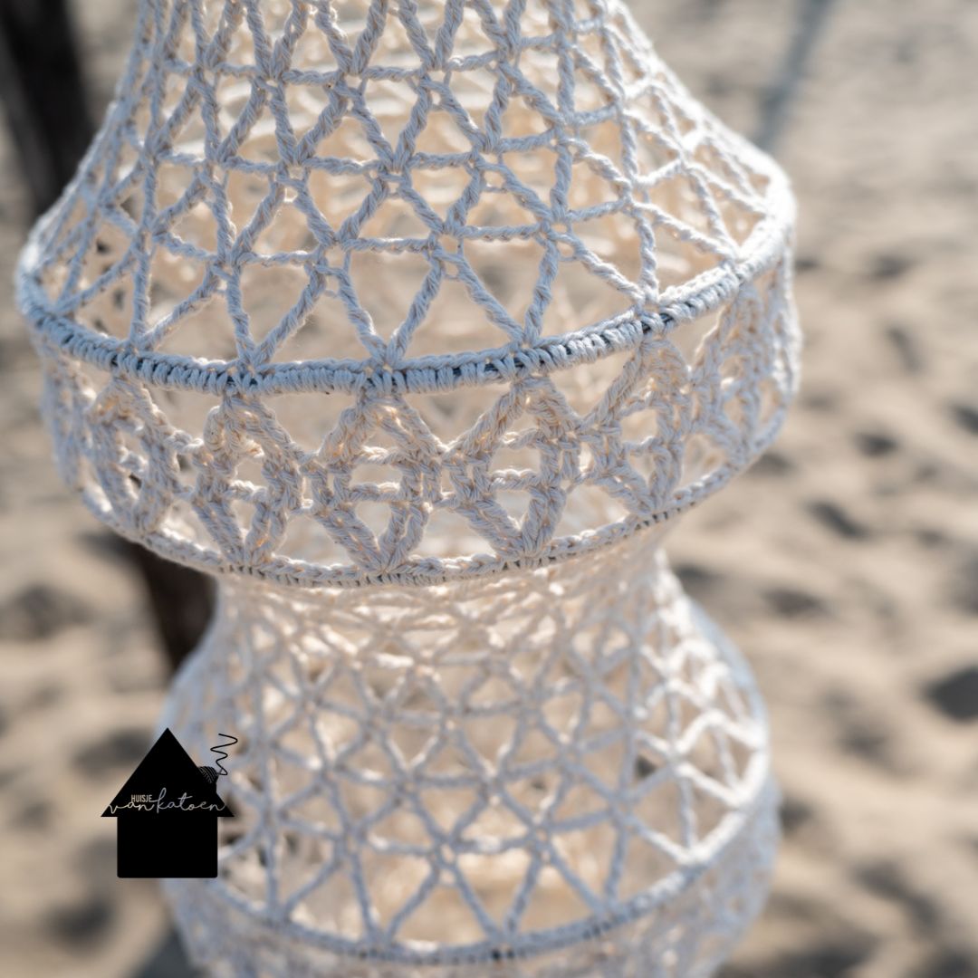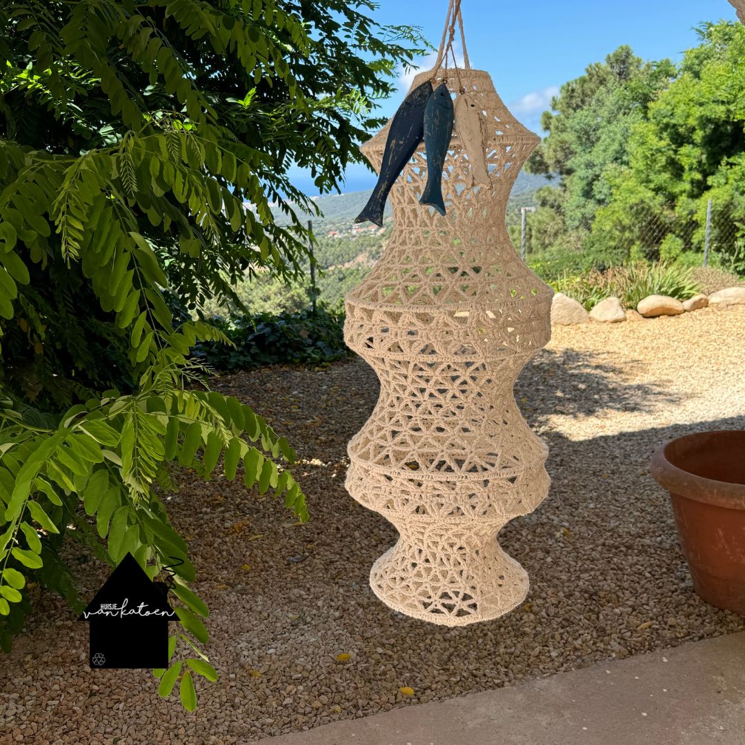 Afmeting: ca 80-90 cm hoog (afhankelijk van hand van haken, haaknaald en garen) Zonder de ophanglus
