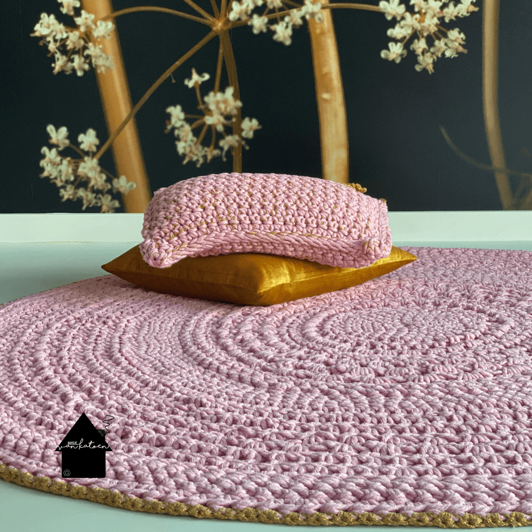 Afmeting: 120 cm doorsnee (afhankelijk van hand van haken, haaknaald en garen)