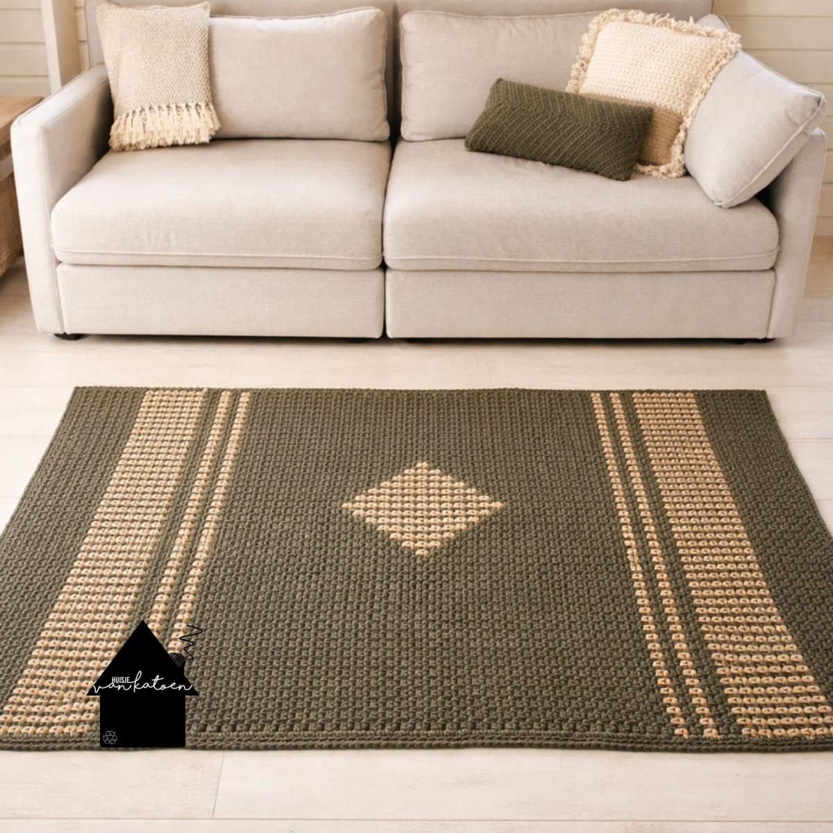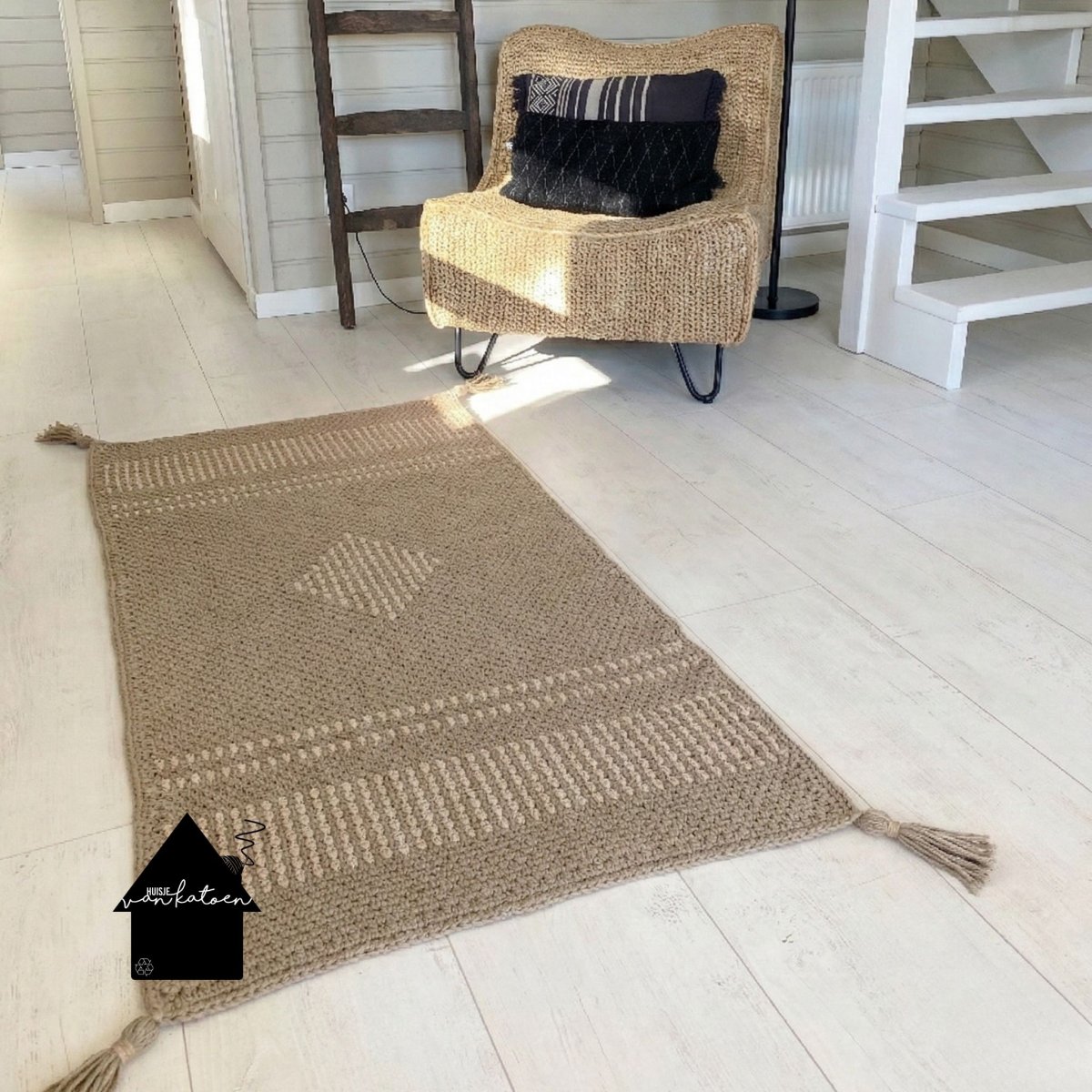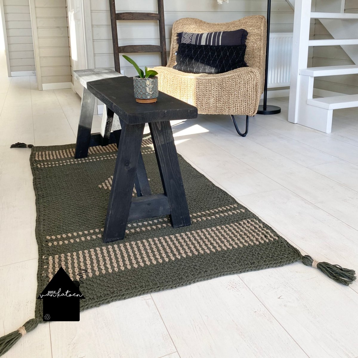 Afmeting: ca 75/140 cm (afhankelijk van hand van haken, haaknaald en garen)
