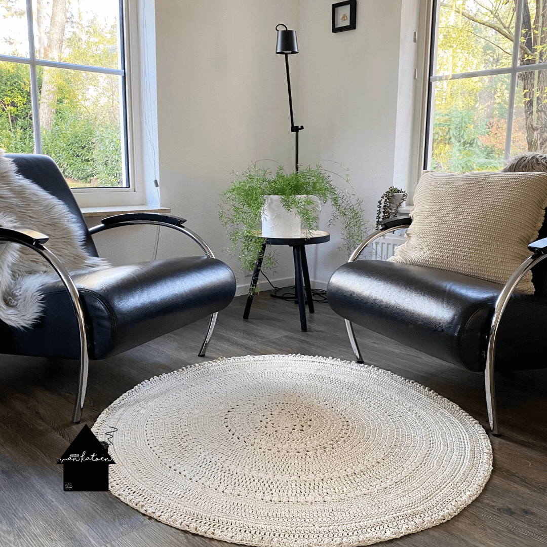 Pamela is een gebreid koord dik maar hol van binnen, waardoor het robuust is maar toch heel fijn haakt. Je haakt Floor met dit garen met haaknaald 7 (advies)