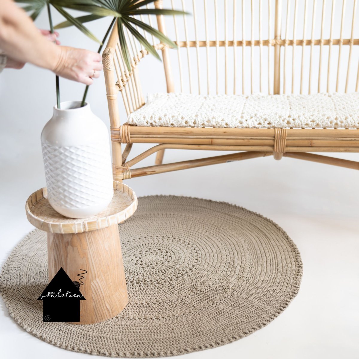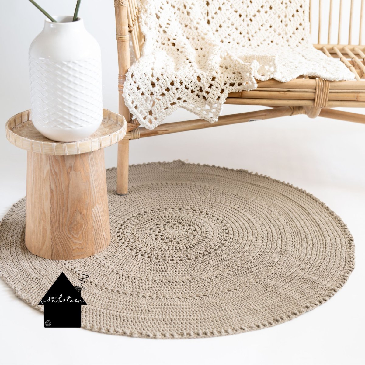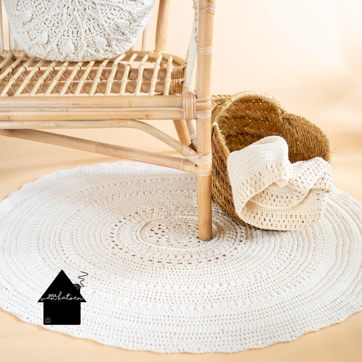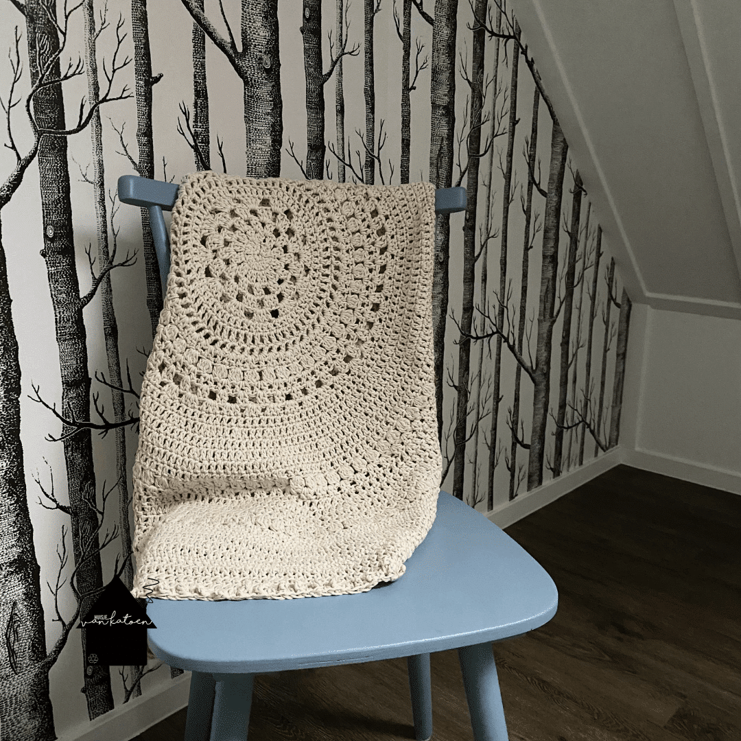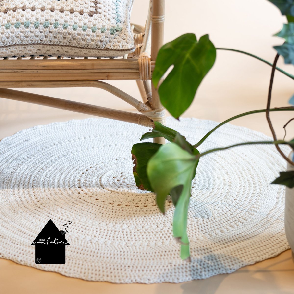 Afmeting: ca 110 cm doorsnee (afhankelijk van hand van haken, haaknaald en garen)