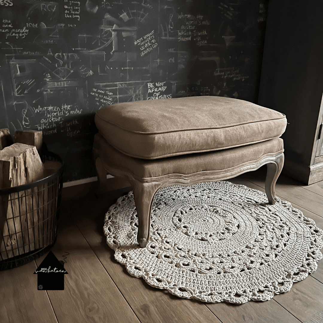Susannah is een prachtig vloerkleed en al tientallen malen gehaakt. Wat echter lastig is met dit patroon is om aan te geven met welke haaknaald je moet haken. Er zat zo ongelooflijk veel verschil tussen alle haaksters dat ik zelf getwijfeld heb om het pakket wel online te zetten. Maar het is echt te mooi om dat niet te doen. Je moet dus echt zelf een aantal toeren haken om te zien welke haaknaald bij jou past voor dit patroon.
