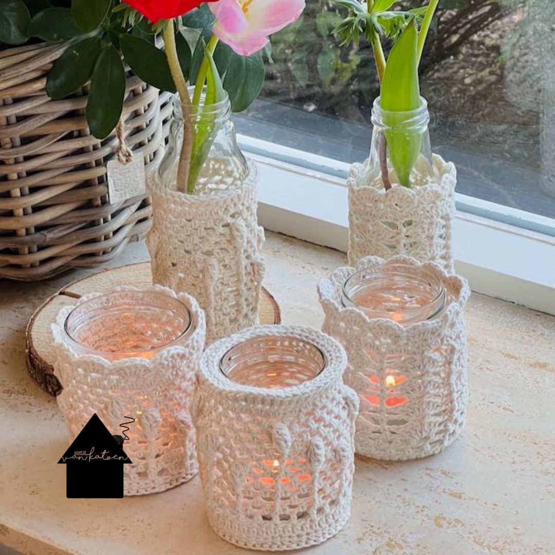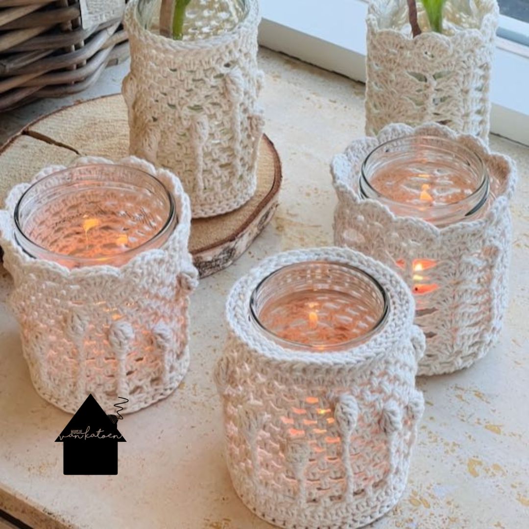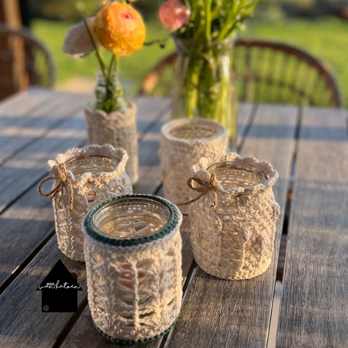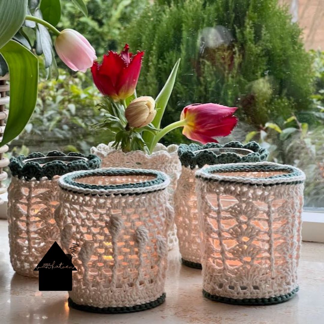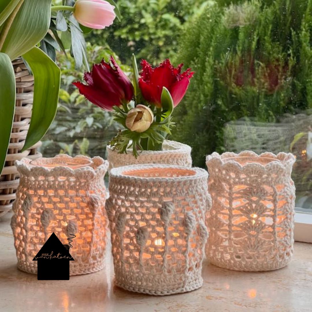 Met dit patroon haak je twee verschillende windlichtjes Stella in twee uitvoeringen (Lace en Bobble) en in meerdere opties voor de afwerking van zowel de onderkant als de bovenkant. Het patroon is geschikt voor de potten van 7,5 – 8 cm diameter.