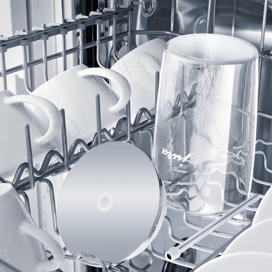 Glas en roestvrij staal kunnen dankzij het gladde oppervlak en de geschiktheid voor vaatwassers comfortabel en eenvoudig worden gereinigd.