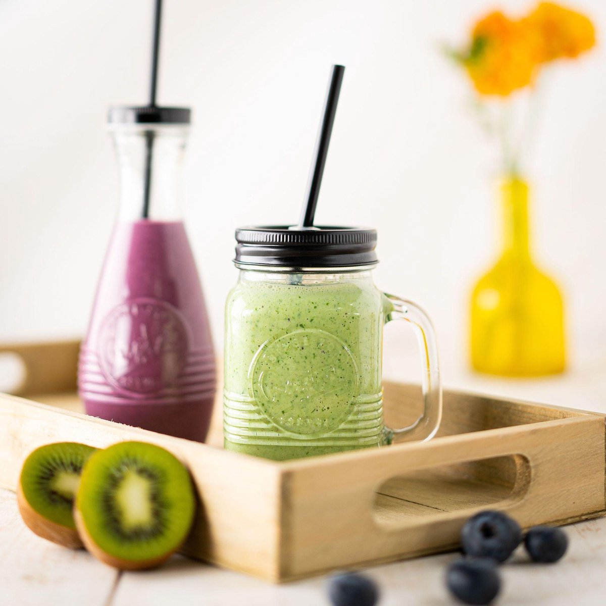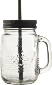 Deze stoere Mason Jar met rietje is handig en leuk. Een leuke manier om je dranken, soep of smoothie in te schenken.