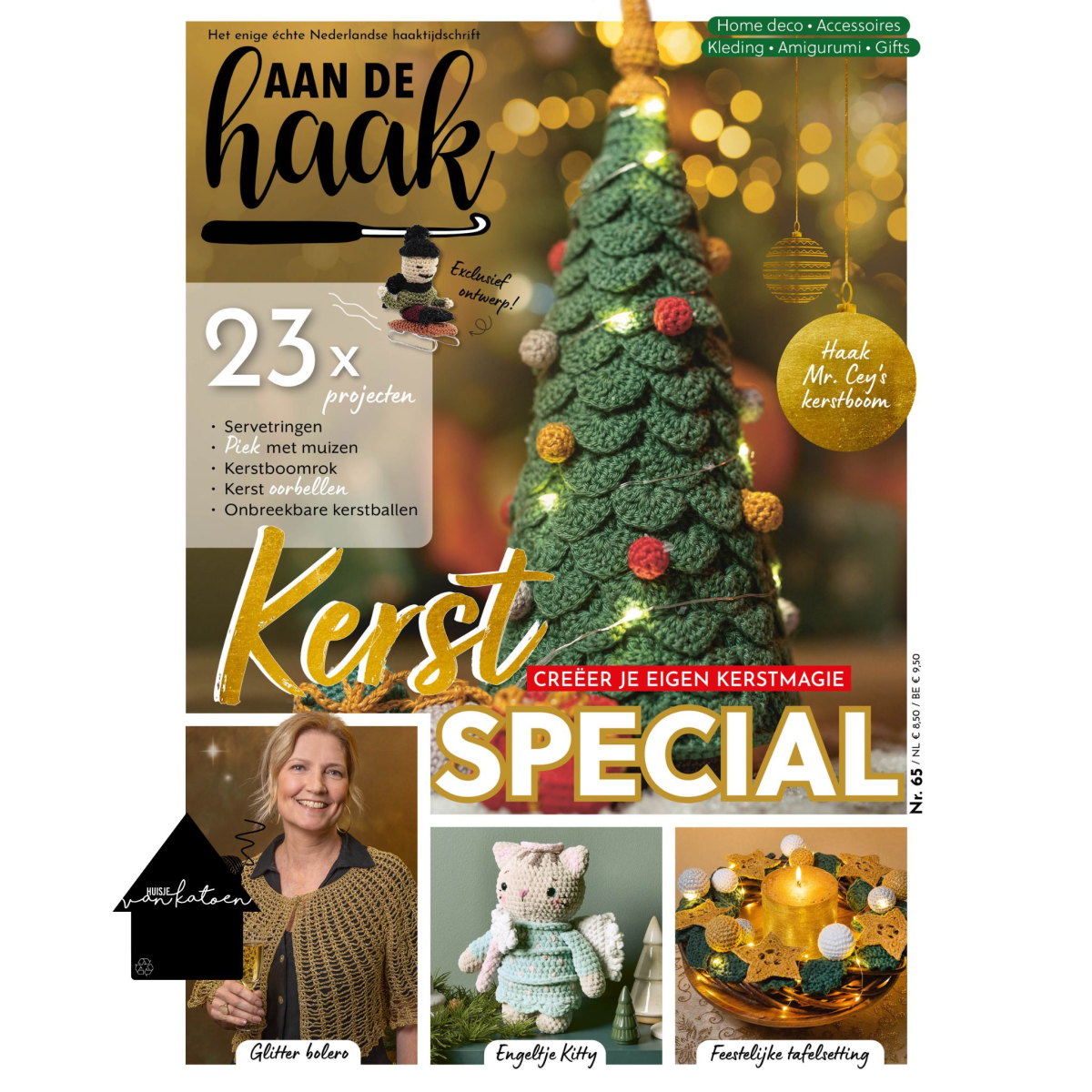Bereid je voor op een magische Kerst met Aan de Haak. Of je nu op zoek bent naar decoraties, cadeaus of iets om zelf te dragen, je vindt het allemaal in deze kerstspecial. Creëer een stralende ambiance met een kerstkrans met lichtjes, de tijdloze kerstster of de gehaakte kerstboom. Kerst is ook het moment om te schitteren: draag de sprankelende bolero en verfraai de feesttafel met gehaakte servetringen. Voor de liefhebbers van unieke accessoires zijn de kerstboom-oorbellen een absolute must-have. En zeg vaarwel tegen gebroken ballen met de onbreekbare kerstballen en verberg de boomvoet elegant met een zelfgemaakte kerstboomrok. Van schattige amigurumi tot fonkelende decoraties, dit nummer is een feest om te haken!