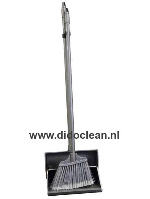 Hotel veegset met afsluitbaar vuilblik voor het gemakkelijk en snel opvegen zonder te hoeven bukken.