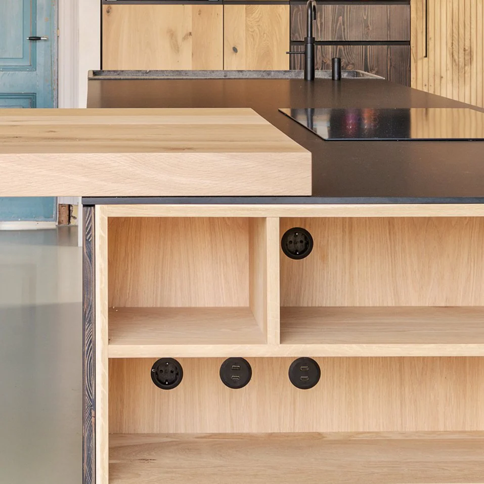 Laat ons de PIX S deskundig integreren in uw maatwerk meubel of keuken. De integratie in houten dekzijden of Fenix panelen is vakkundig en naadloos, waardoor de stroompunten bijna onzichtbaar zijn. Voor integratie in stenen rugwanden of steenachtige bladmaterialen gelden speciale prijzen, aangezien deze materialen een andere aanpak vereisen.