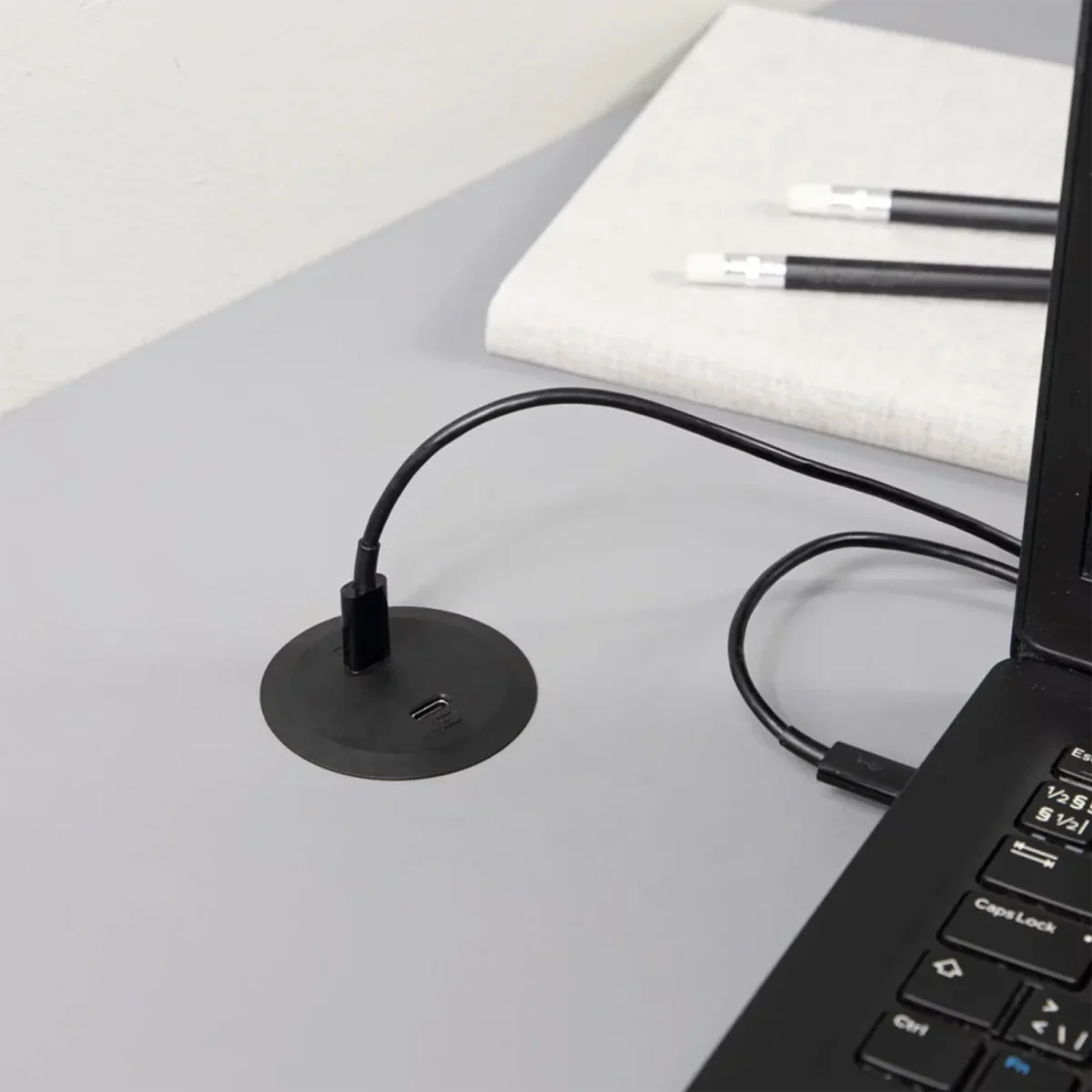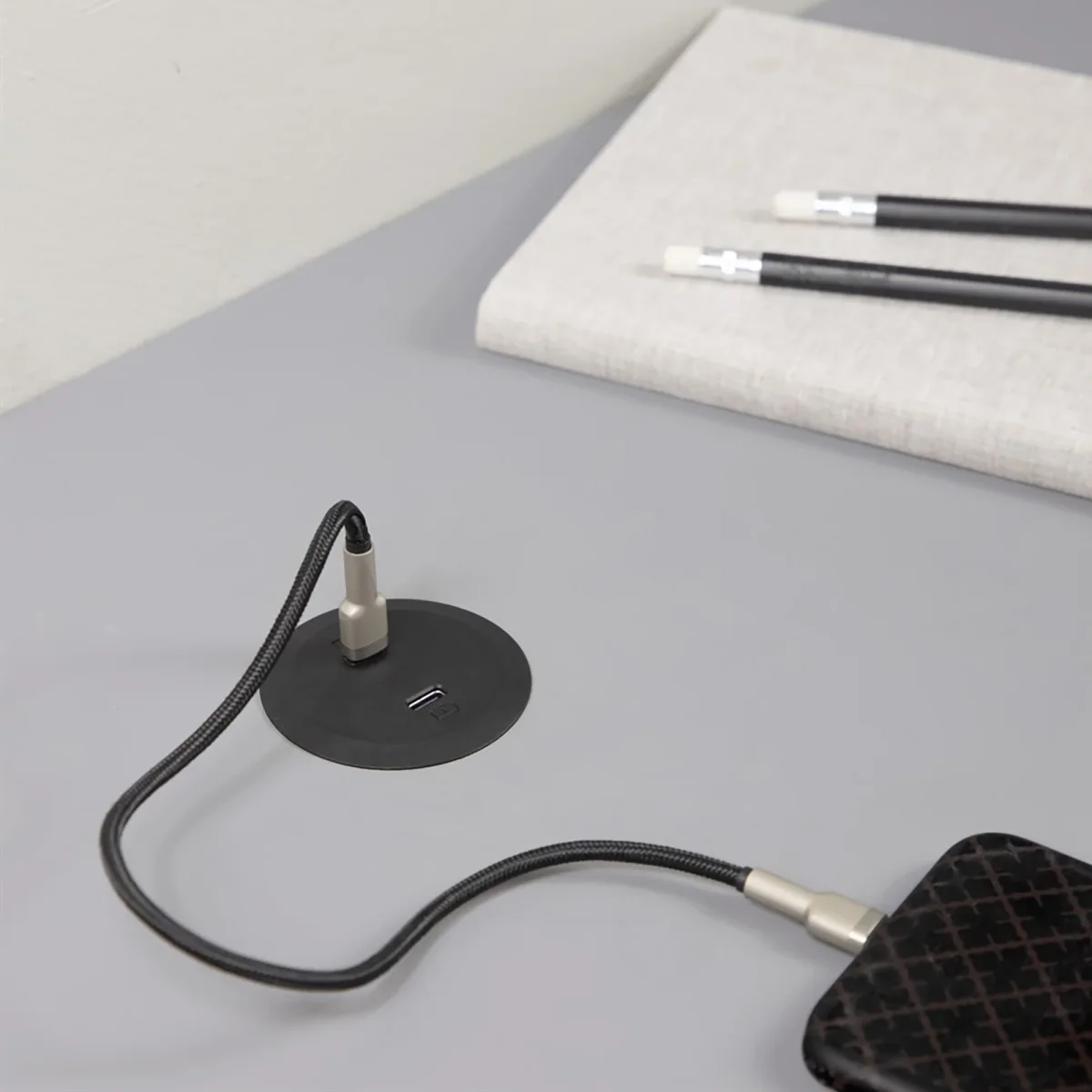 De installatie van de Powerdot USB-C is verrassend eenvoudig. Een gat van 51 mm in diameter is alles wat nodig is om deze krachtige oplaadhub een permanent thuis te geven in uw meubilair. Met een eenvoudige bevestigingsring wordt de Powerdot stevig onder het oppervlak vastgezet, waardoor een stabiele en betrouwbare stroombron ontstaat zonder de noodzaak van een elektricien.