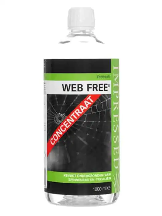 Impressed WEB FREE Premium 1L Concentraat is een effectieve reiniger tegen vervuiling door spinnen, luizen, vliegen, muggen, wespen, witte vlieg, wants, trips en spint. Verdun Web Free concentraat met kraanwater om vervolgens met een drukspuit Web Free aan te brengen op de te behandelen oppervlakken, gaten en kieren.