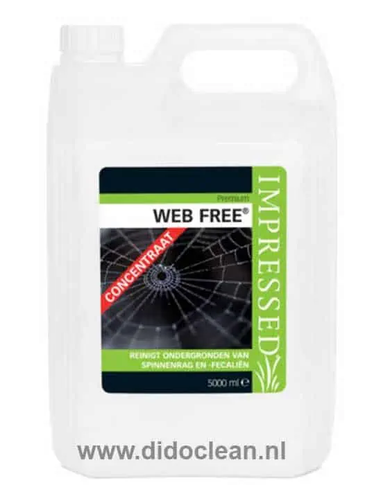 mpressed WEB FREE Premium 5L Concentraat is een effectieve reiniger tegen vervuiling door spinnen, luizen, vliegen, muggen, wespen, witte vlieg, wants, trips en spint. Verdun Web Free concentraat met kraanwater om vervolgens met een drukspuit Web Free aan te brengen op de te behandelen oppervlakken, gaten en kieren.