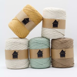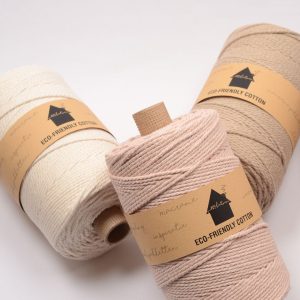 Al het macramé garen van Huisje van Katoen wordt in Europa geproduceerd, met aandacht voor duurzaamheid. Kieppari is een circulair product dat wordt vervaardigd uit gerecyclede en geregenereerde katoenvezels.