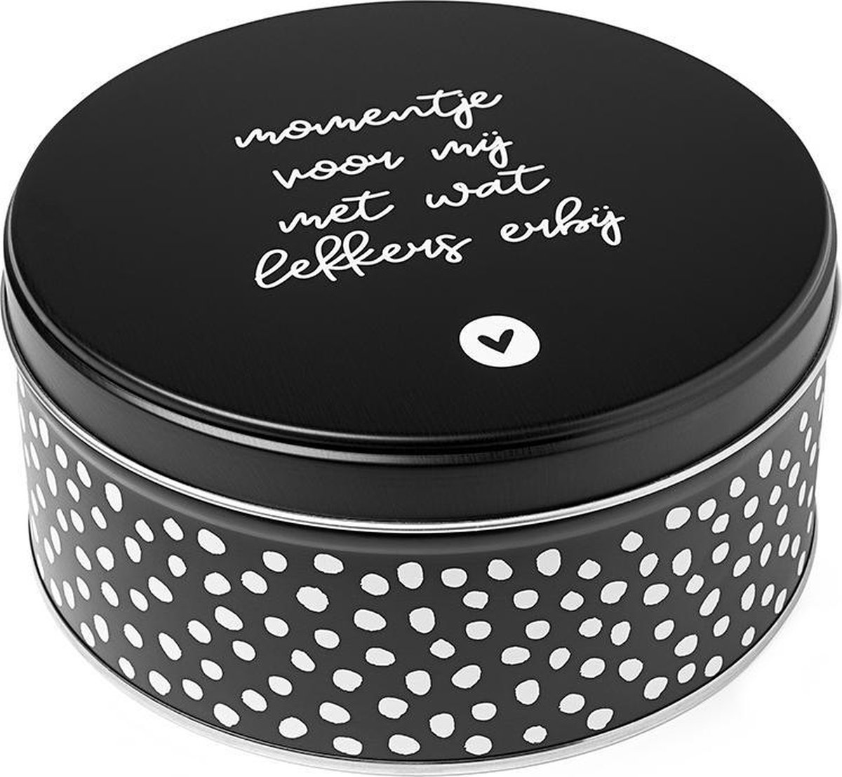 Koektrommel Momentje voor mij met wat lekkers erbij, zwart wit stippen, Zoedt