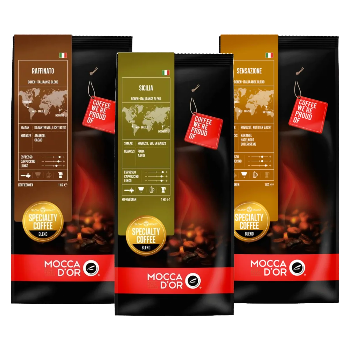 Trio Italiano is een proefpakket met drie soorten Italiaanse koffie. en verfijnde selectie van drie authentieke Italiaanse melanges, elk met een uniek karakter. Van robuust en notig tot krachtig en vol, perfect voor liefhebbers van Italiaanse koffie. Geschikt voor diverse zetmethodes zoals espresso, mokapot en filterkoffie. Geniet van de rijke smaken en ambachtelijke traditie van Italië in elke kop!