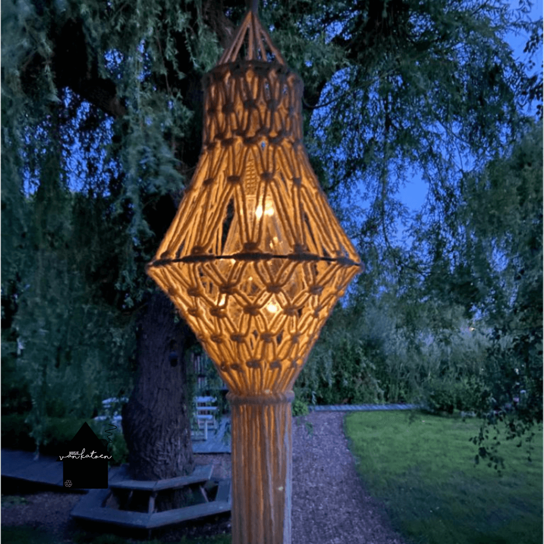 Exclusief verlichting. Je kunt er een led lampje in hangen. Deze zijn te koop bij tuincentra, action, hema.