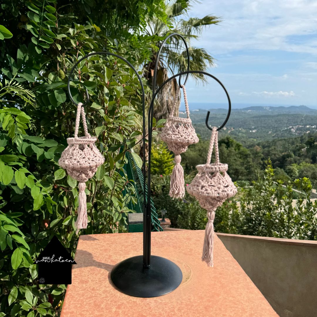 Afmeting: ca 24 cm hoog inclusief ophangkoordje en lusje onderaan.