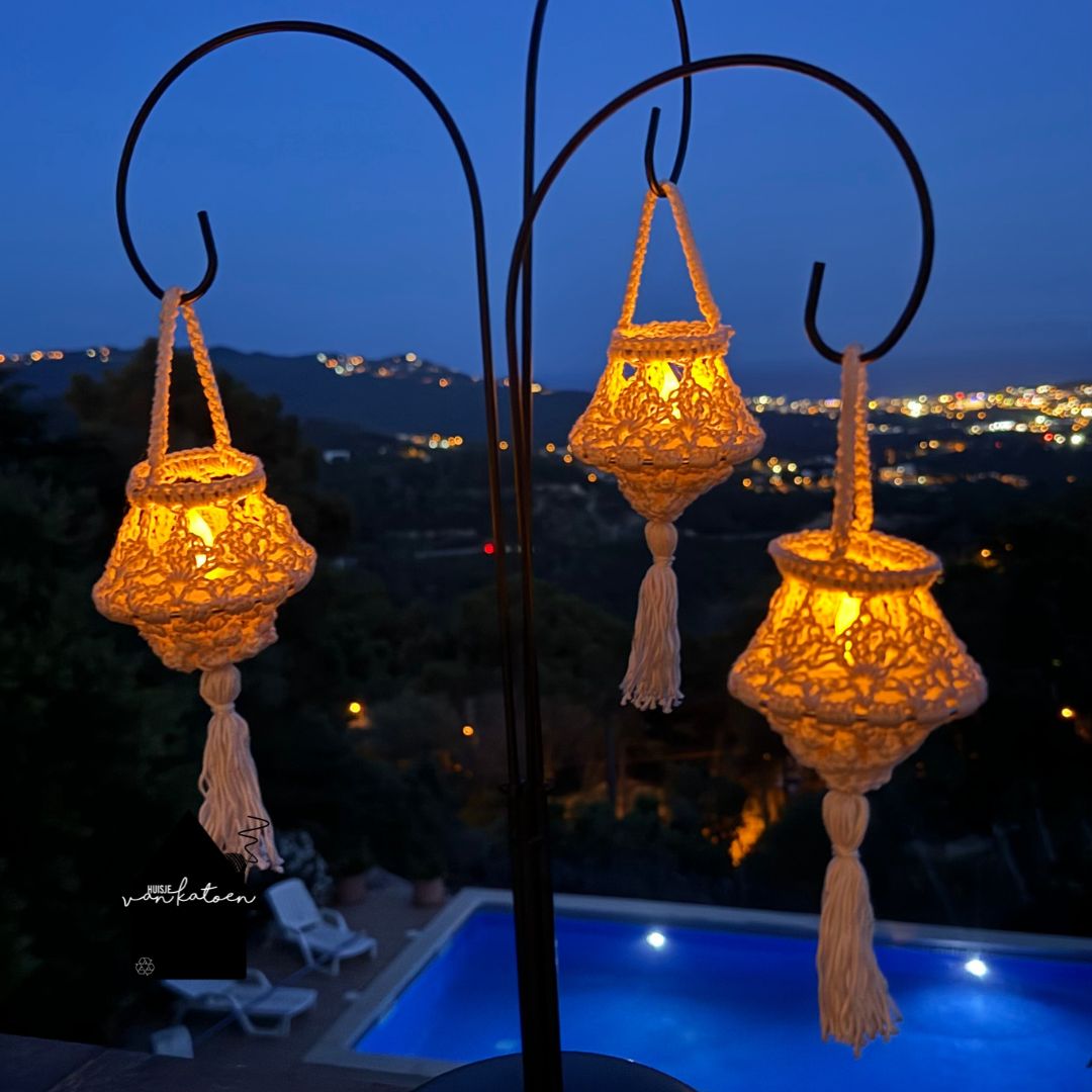 Je ontvangt de 3 lampionnen in de kleur zoals op de 2e foto te zien is. De andere foto’s zijn ter inspiratie. De lampionnen moeten even uithangen als je ze ontvangt.