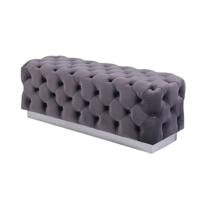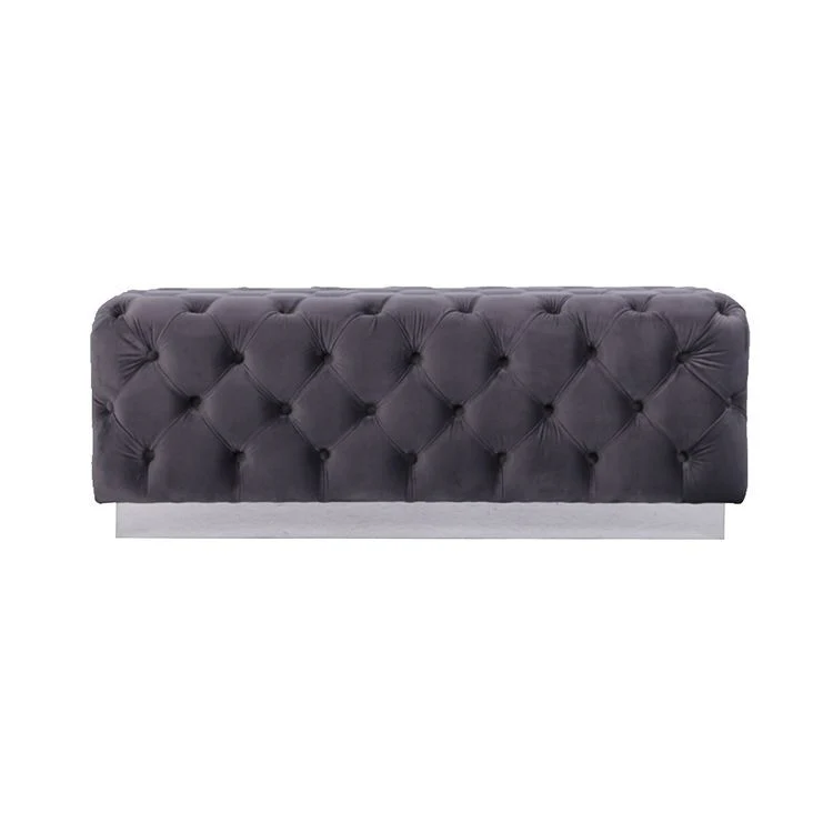 Het Luxury zitbankje Calabria in grijs stof met zilverkleurig onderstel is een elegante toevoeging aan elk interieur. De zachte fluwelen bekleding in een verfijnde grijstint geeft de bank een moderne, luxueuze uitstraling, terwijl het zilverkleurige onderstel zorgt voor een strak en tijdloos design. De karakteristieke capitonnéstikking maakt het geheel compleet en voegt een vleugje klassieke elegantie toe.