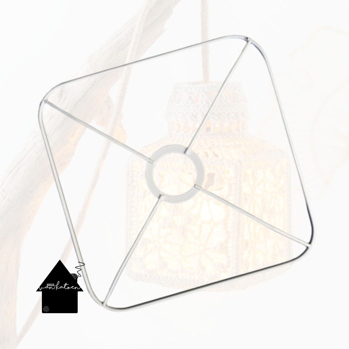 Onze metalen lampenkap vierkanten zijn de ideale basis voor haak en macramé avonturen. Deze zijn 15 bij 15 cm en allemaal voorzien van een wit epoxy laagje waardoor ze net even chiquer ogen dan je standaard stukje ijzer.