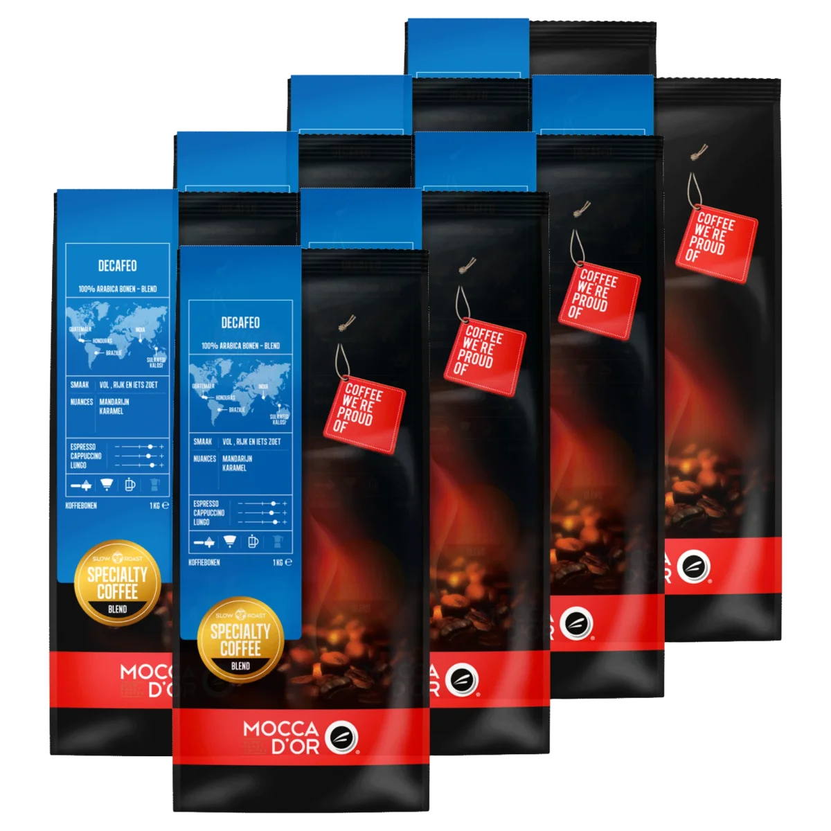 Uiteraard bieden wij ook gedecafeïneerde koffiesoorten. De Mocca d’Or Espresso Decafeo 8kg is een uitgekiende blend van 100% Arabica bonen afkomstig uit onder andere Brazilië, Guatemala, Honduras en India. De smaak is vol, rijk en iets zoet met verfijnde nuances van mandarijn en karamel.
